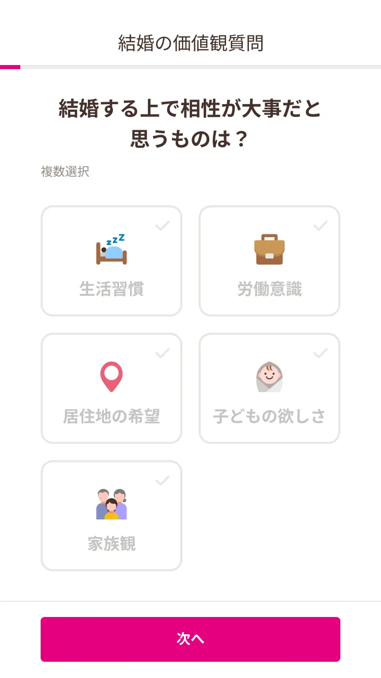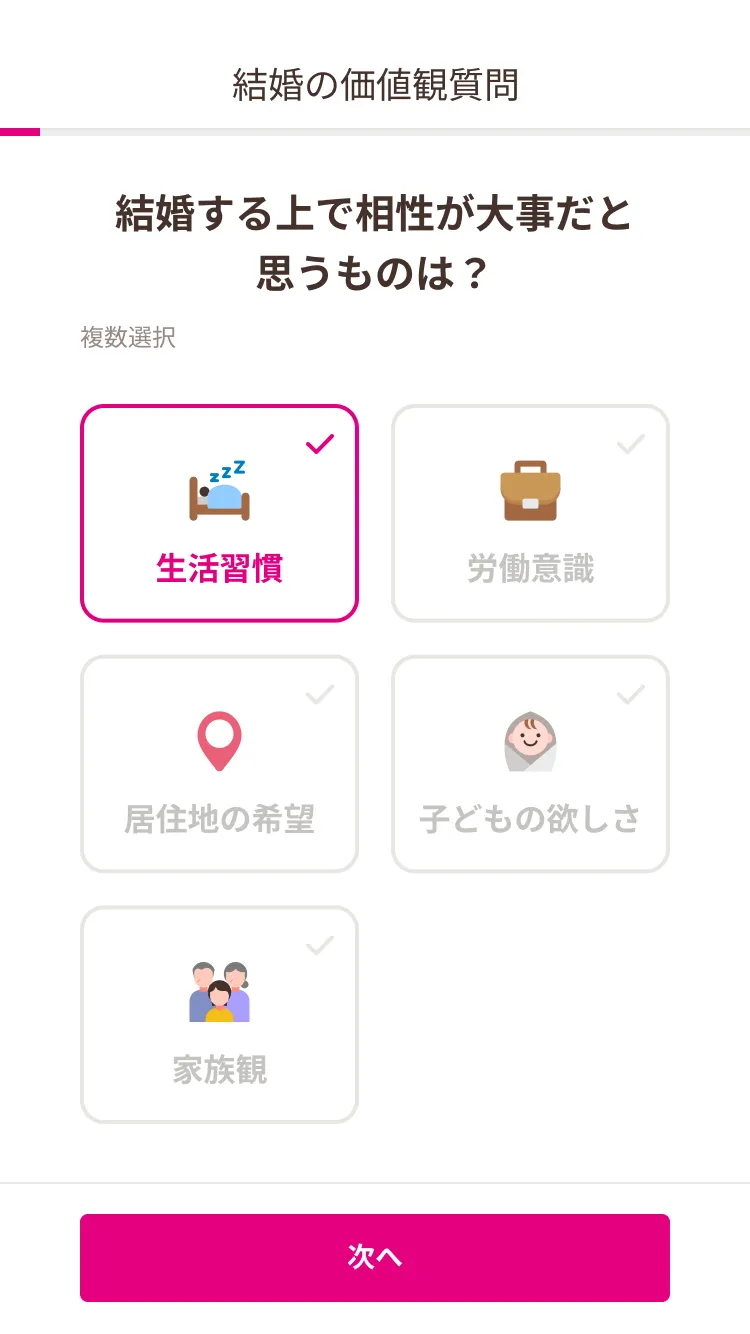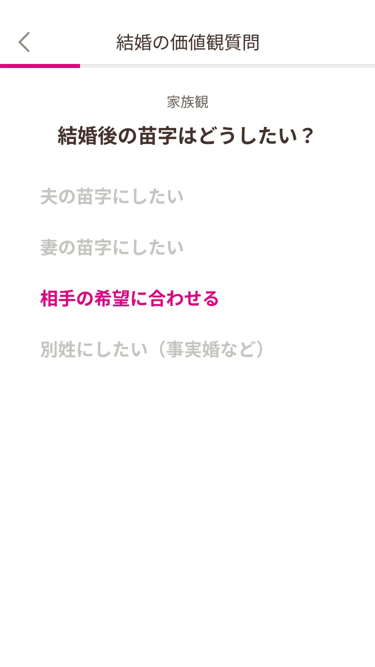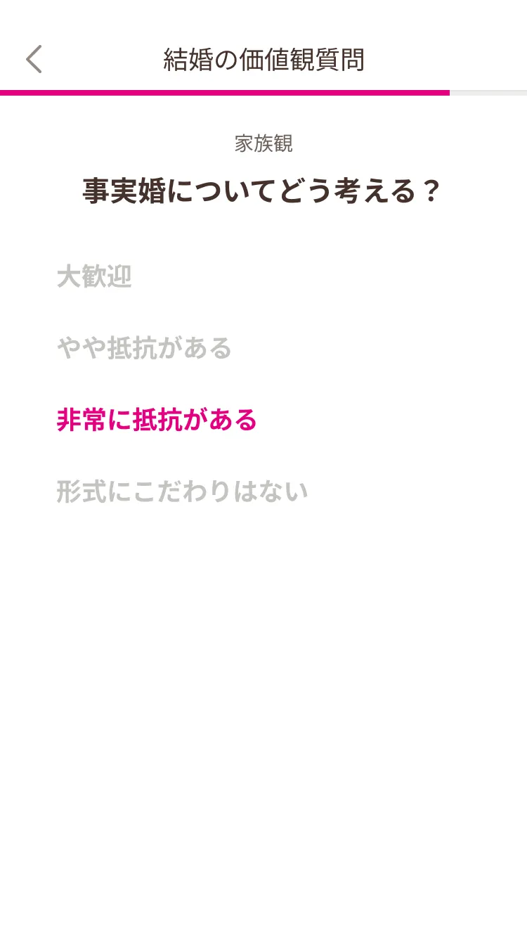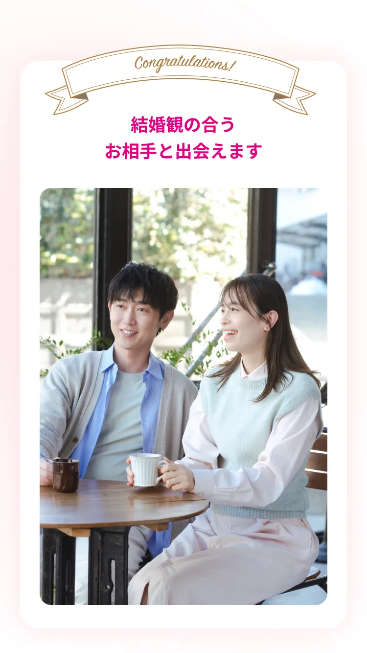 事前に知ることができる!結婚観マッチング機能で、"出会う前"から結婚観の擦り合わせが可能に。本当に結婚をしたいと思える人と出会えます -
